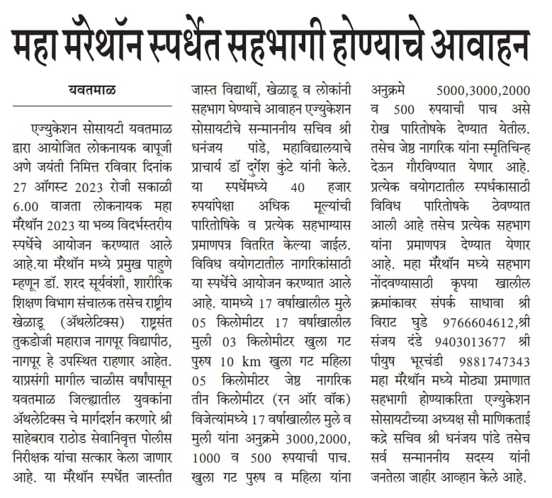 Loknayak Bapuji Aney Mahila Mahavidyalaya, Yavatmal